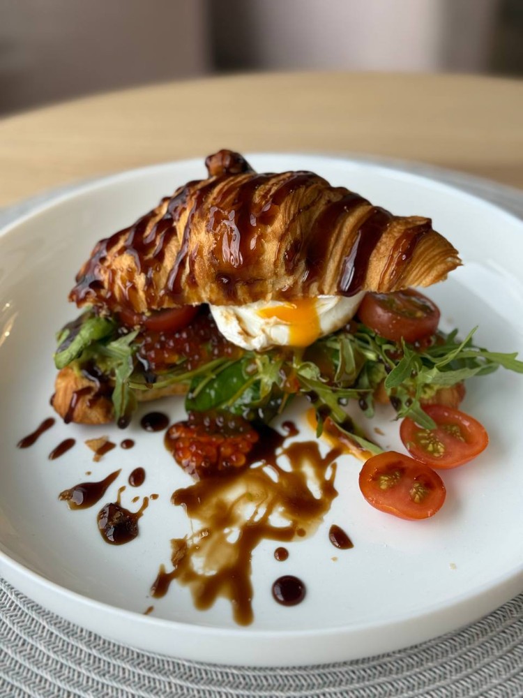 Круасан з яццем пашот та ікрою