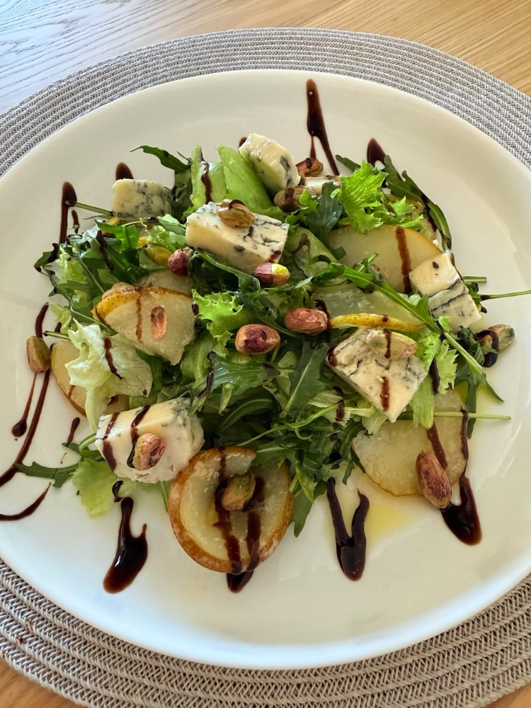 Салат з фісташками та карамелізованою грушою